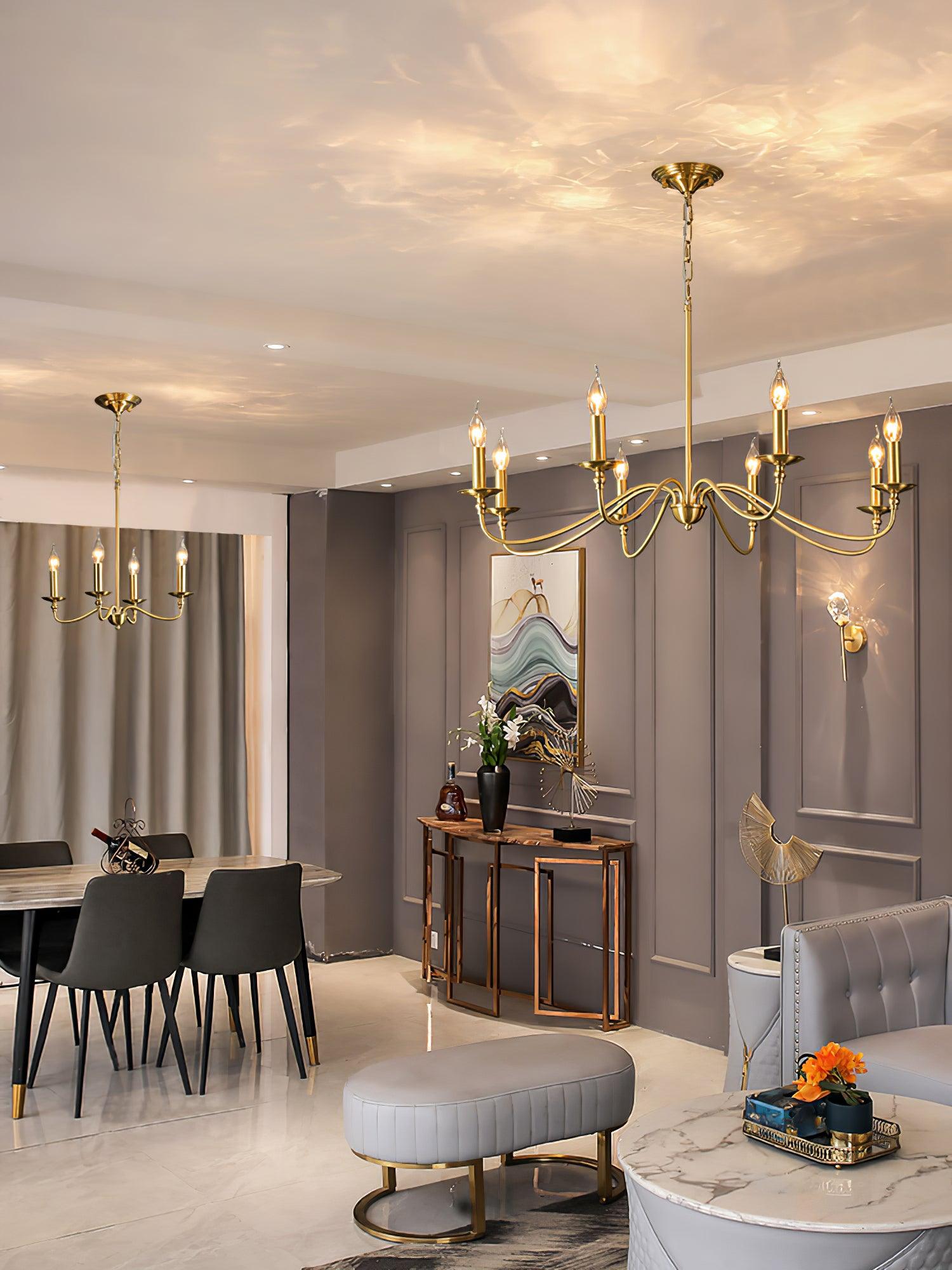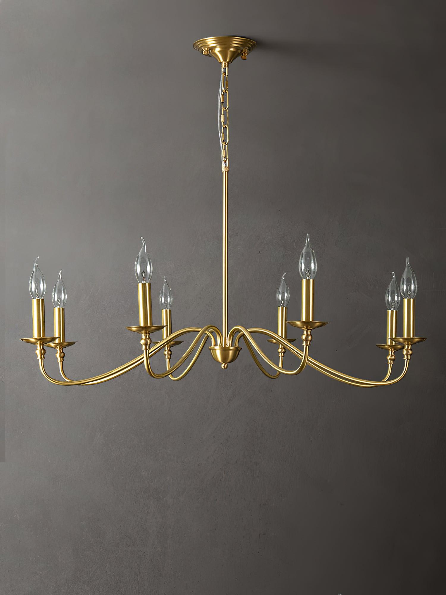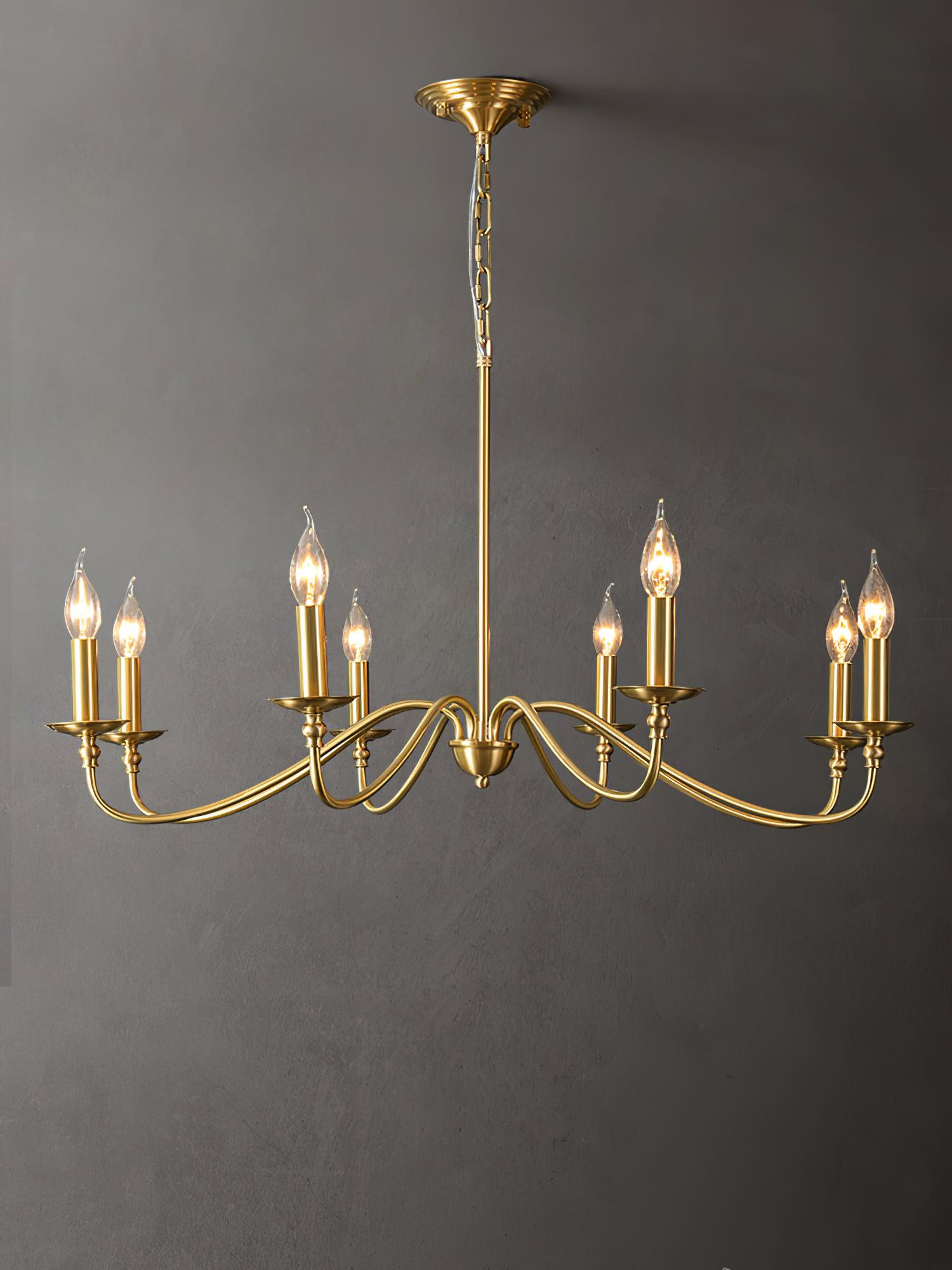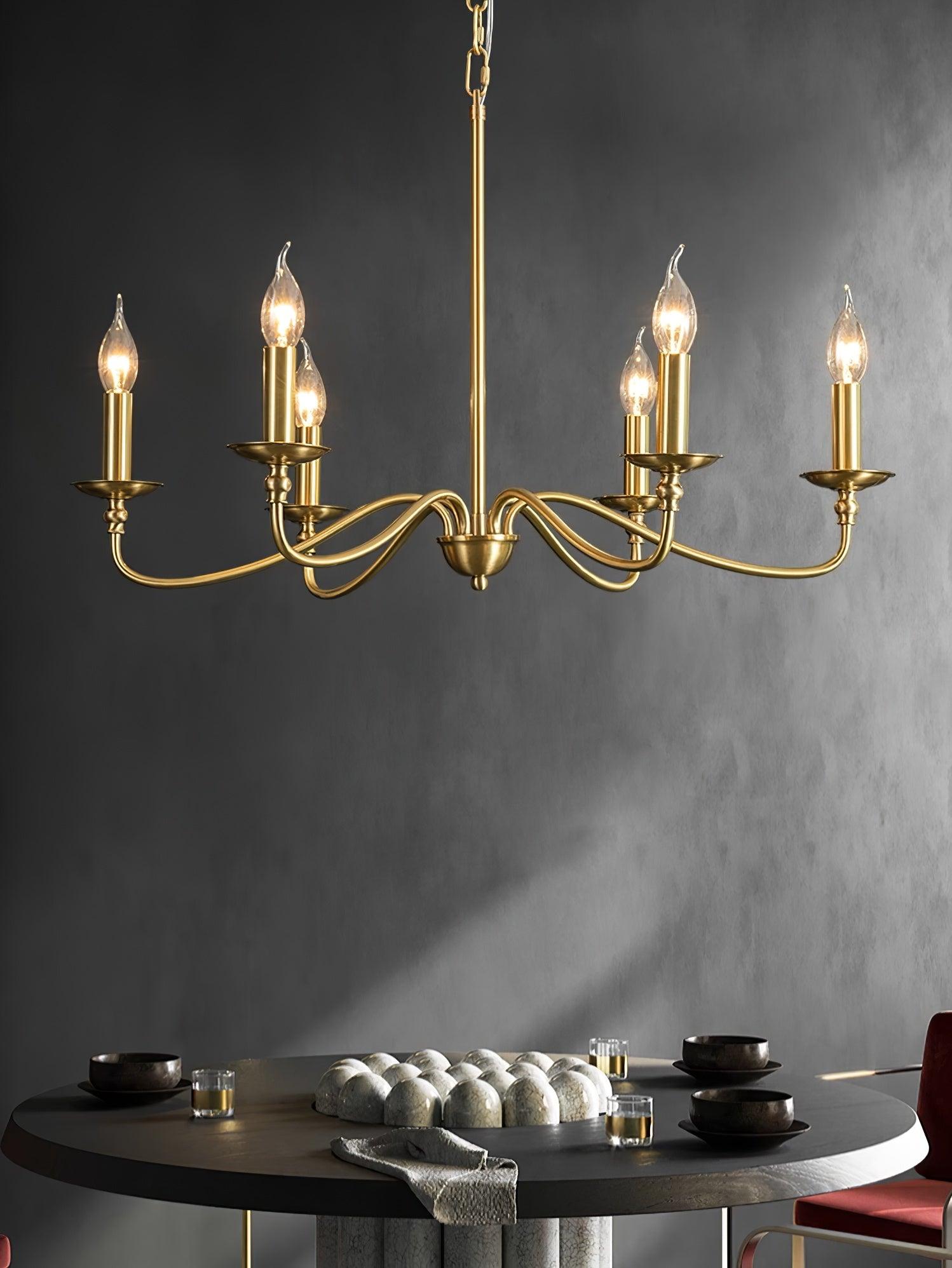 This modern farLSouse lightning featuring classic curved arms with a rich hand brass finish. Hand forged brass construction makes this candle chandelier durable while keep charm and add much farLSouse fair. The modern brass chandelier combines timeless style and contemporary silhouette to reveal personality and identity to your living room, kitchen island, bedroom, foyer, hall, staircase, loft, and dining room.