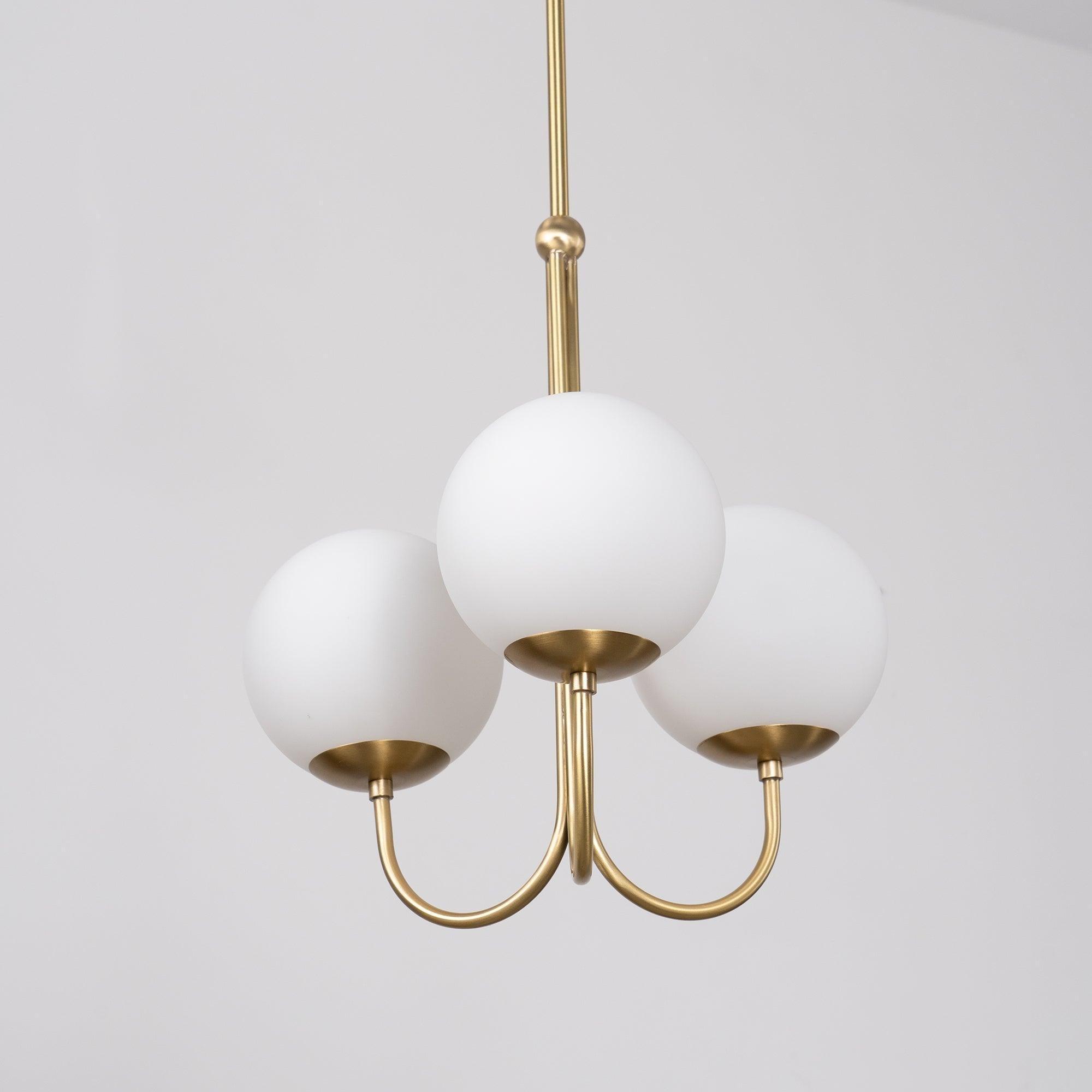 Brass body, white round glass shade.