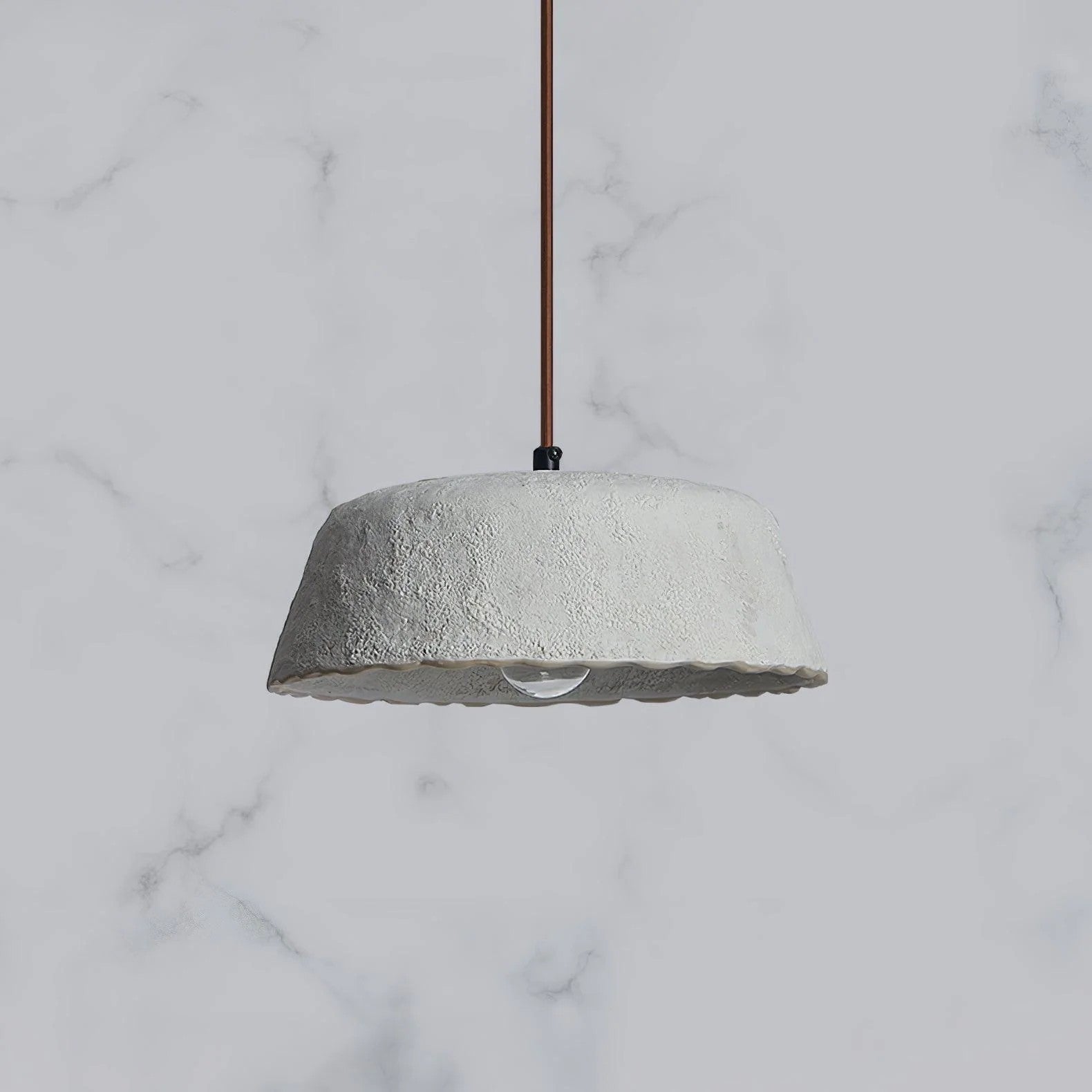 Make a statement with the ‘Bowlful Ceramic Pendant Lamp’, a luxurious blend of modern and timeless elegance. Crafted from ceramic with a textured, frosted finish, its minimalist design features a sleek suspension rod and a soft, golden hue, complemented by a backdrop of pristine marble. Perfect for sophisticated interiors, this pendant lamp is sure to add a touch of class to any space.