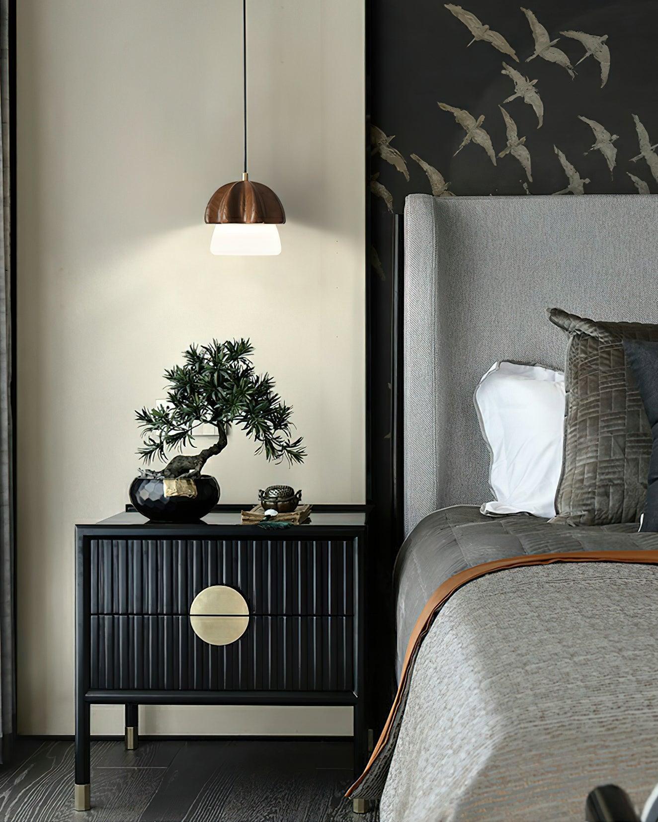The Mushroom Cluster Chandelier is a whimsical, charming lighting fixture that brings the charm of nature indoors. Inspired by the delicate and organic forms of mushrooms, this pendant light features a cluster of sculpted wood caps paired with frosted glass shades, each emitting a soft, inviting glow. The design captures the essence of a tranquil forest scene, where the natural beauty of wood meets the warmth of diffused light.