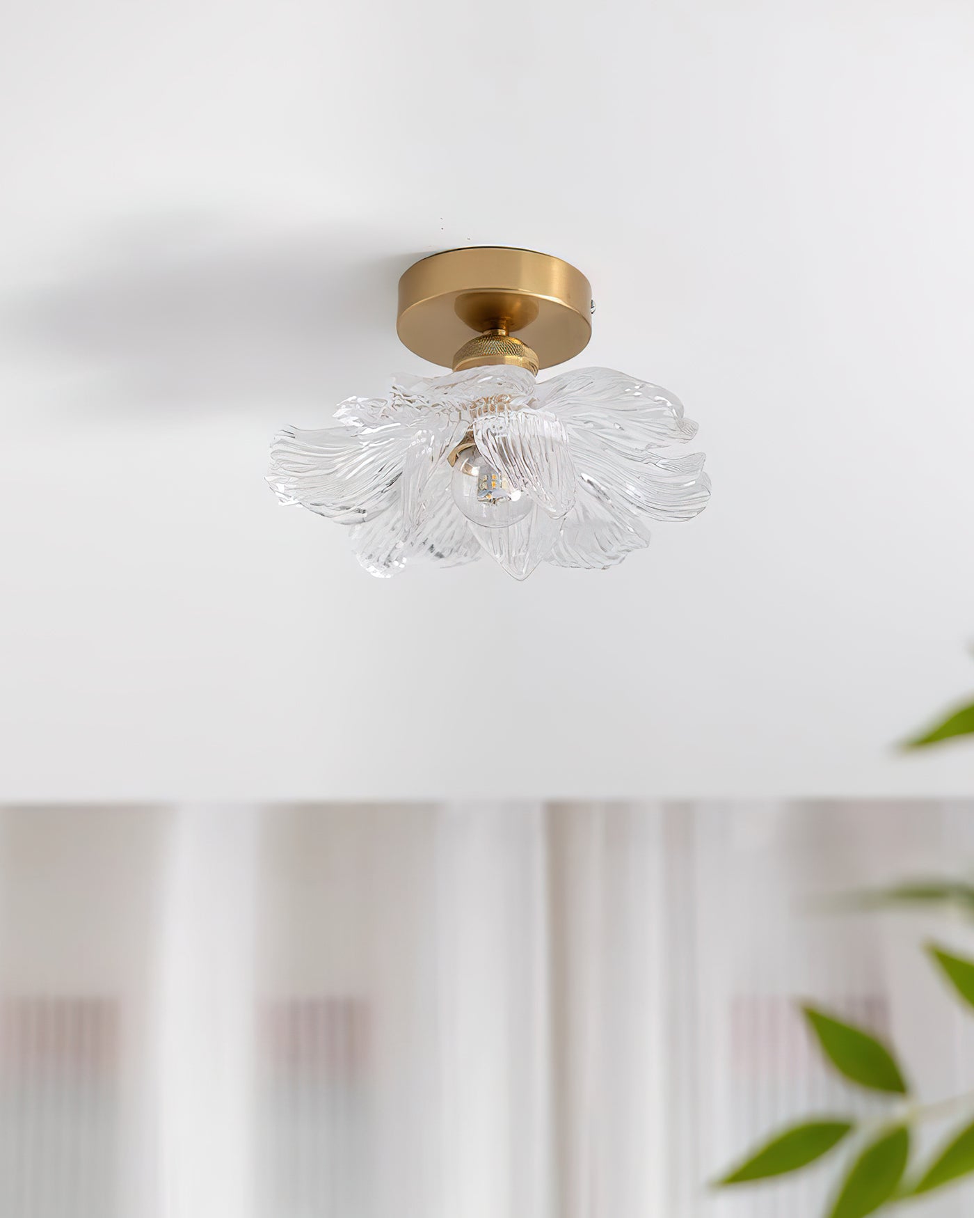 The Retro Petal Ceiling Light from Mooiehome captures the elegance of vintage floral design with a fresh, contemporary twist. Crafted from a graceful combination of metal and glass, this ceiling fixture features delicately molded glass petals that bloom outward from the center, diffusing light in a soft, enchanting glow.Its petal-like structure mimics the organic beauty of nature while the warm-toned metal base adds a touch of sophistication and stability. Ideal for entryways, hallways, or powder rooms, the Retro Petal Ceiling Light transforms even the simplest ceilings into focal points of charm and elegance.